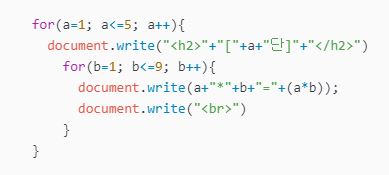 for문 안에 for문을 사용한 것을 중첩 for문이라고 합니다. 예를들어 자바스크립트를 이용해 3행 5열의 표를 만들 때, 1행씩 행이 만들어질 때마다 5개의 열을 만들어야 할 경우에 중첩 for문을 사용합니다. 기본형은 다음과 같습니다.