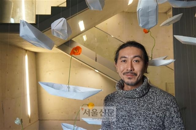 “동일본 대지진으로 모든 것이 흽쓸려 나가자 콘크리트 아래에 있던 꽃씨가 발아해 다시 피어난 것이었어요. 사람이 자연을 몰아냈고, 자연 재앙으로 인해 사람이 사라지자 다시 생명이 싹튼 것을 보면서 많은 생각을 하게 됐습니다. 대지 아래에서는 끊임없이 생과 사가 반복되고 있으며 꽃꽂이 작업이 이렇게 삶과 죽음을 연결시키는 것임을 깨달았습니다.”