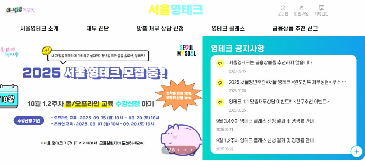 서울 영테크는 서울시가 만 19~39세 청년들의 금융자립을 돕기 위해 운영 중인 대표적인 청년 지원사업입니다. 서울 거주 또는 활동 중인 청년이라면 누구나 무료로 1:1 재무상담과 금융교육을 제공합니다. 하지만 특정 상품에 대한 투자는 권유하지 못 하게 되어 있습니다.